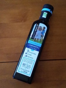 Depuis quelques temps j’utilise l’huile [Enfants] pour les 3 à 9 ans, c’est un mélange d’huile de tournesol, de lin doré, colza et de poissons sauvages.
